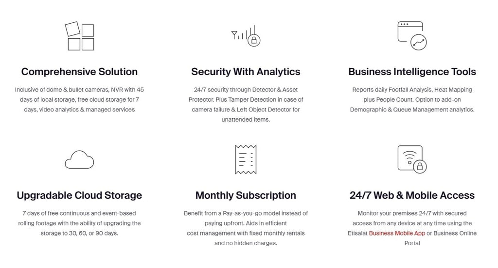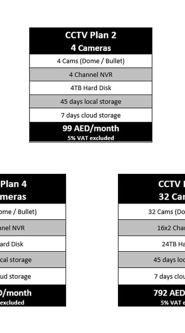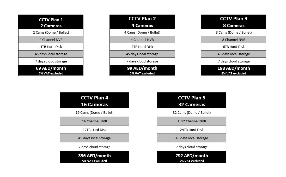 CCTV Device Only Plans comprising advanced business intelligence tools, in-depth analytics, upgradeable cloud storage, a broad selection of high-definition cameras to pick from, 24/7 access from anywhere on any device and much more, starting from only AED 69/month!